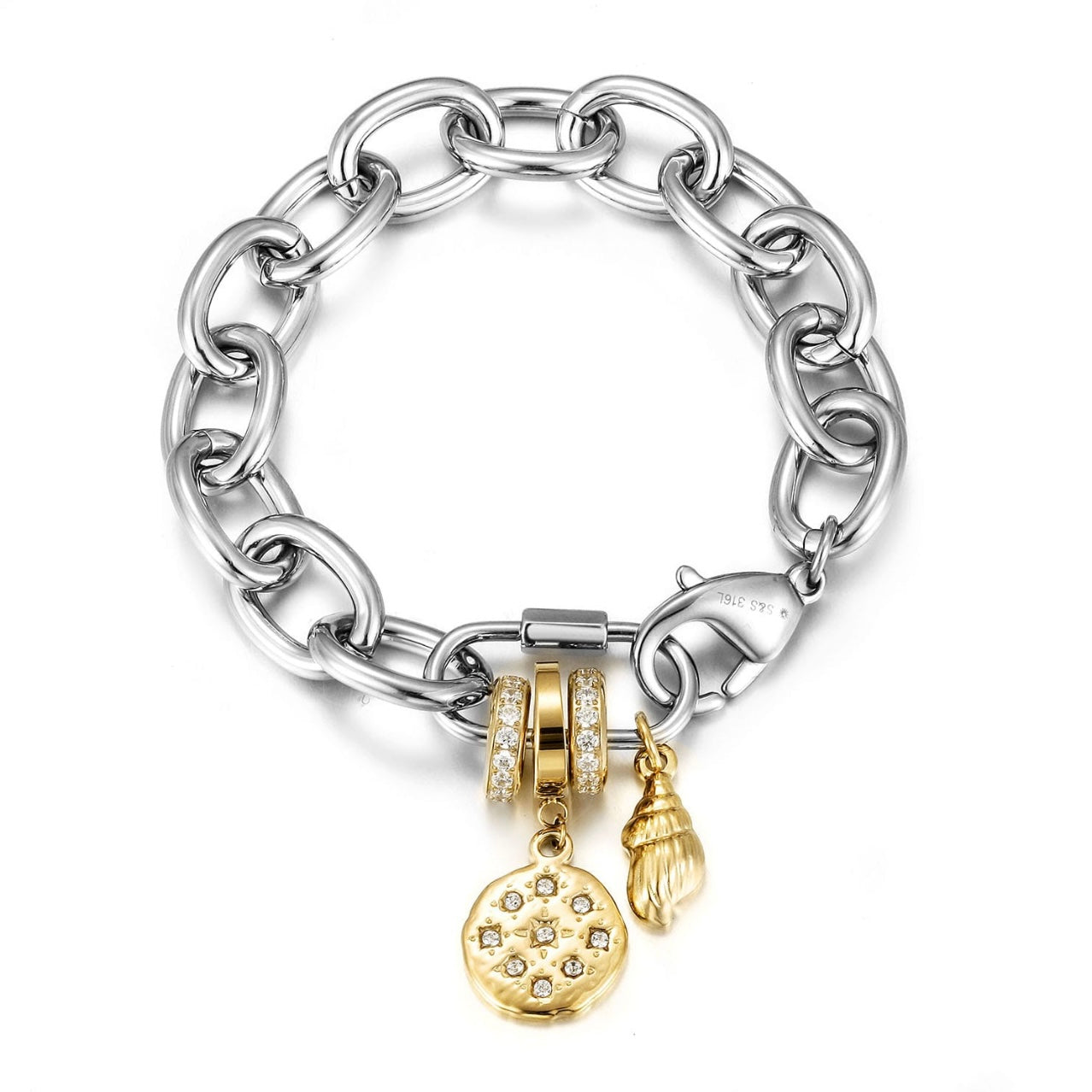 Chunky Charm Chain Bracelet – Stainless Steel with Gold Accents