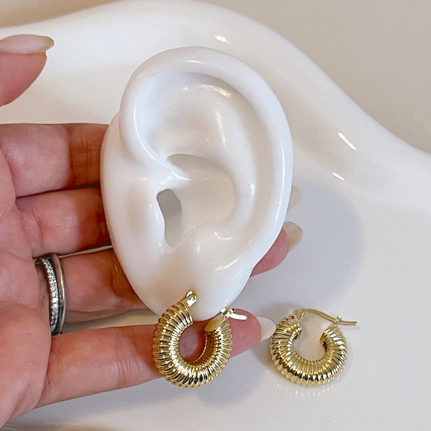 Isvi is featuring a ribbed design, this gold plated over brass style is lightweight yet luxe.