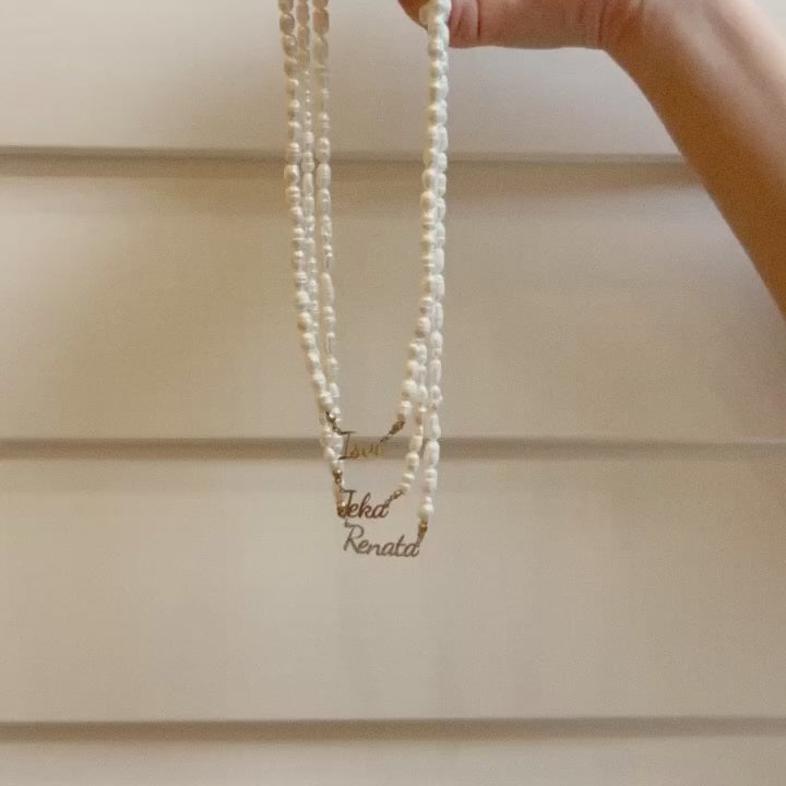 Custom Pearl Name Necklace – Handmade with Freshwater Pearls & Stainless Steel