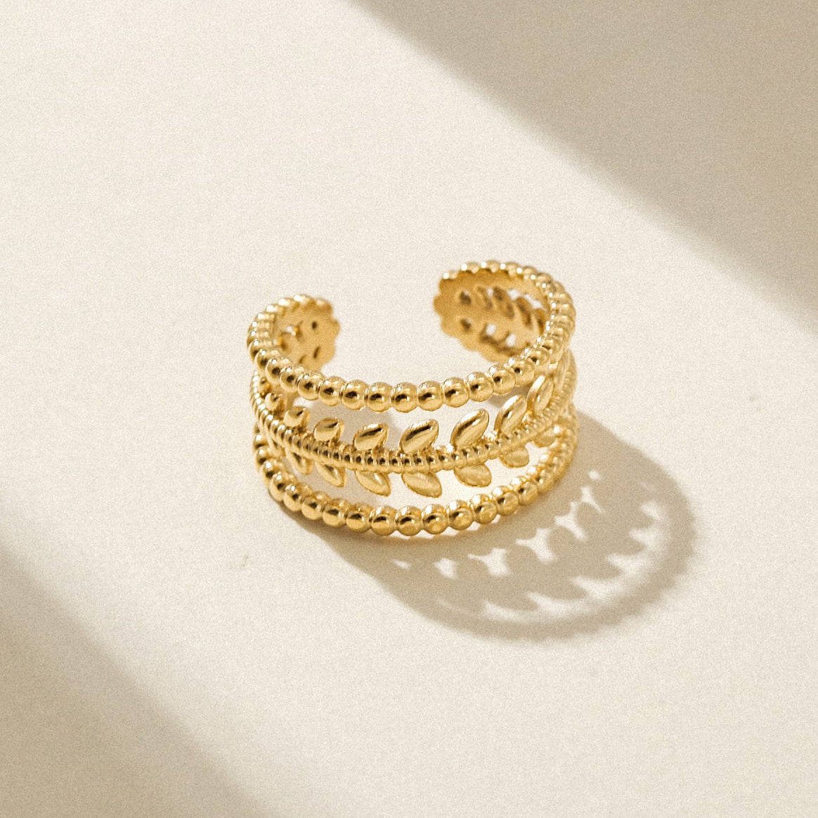 Add a touch of elegance with this unique openwork gold-plated ring. Crafted from high-quality stainless steel, this adjustable ring showcases a beaded design that beautifully frames a delicate leaf motif, creating a sophisticated, nature-inspired look. Its open-ended design ensures a comfortable, customizable fit, making it a versatile accessory for any finger. Perfect for stacking or wearing solo, this ring combines durability with style, making it an essential addition to your jewelry collection. Embrace its timeless charm and elevate your everyday style effortlessly.