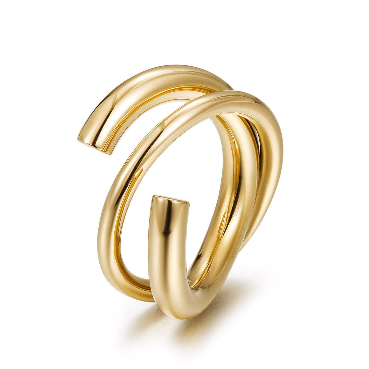 Add a touch of modern elegance with our spiral ring, crafted from high-quality stainless steel and finished with a radiant 18K gold plating. Its unique open design offers a contemporary twist. Perfect for stacking or as a statement piece, this versatile ring effortlessly elevates your everyday or formal look.