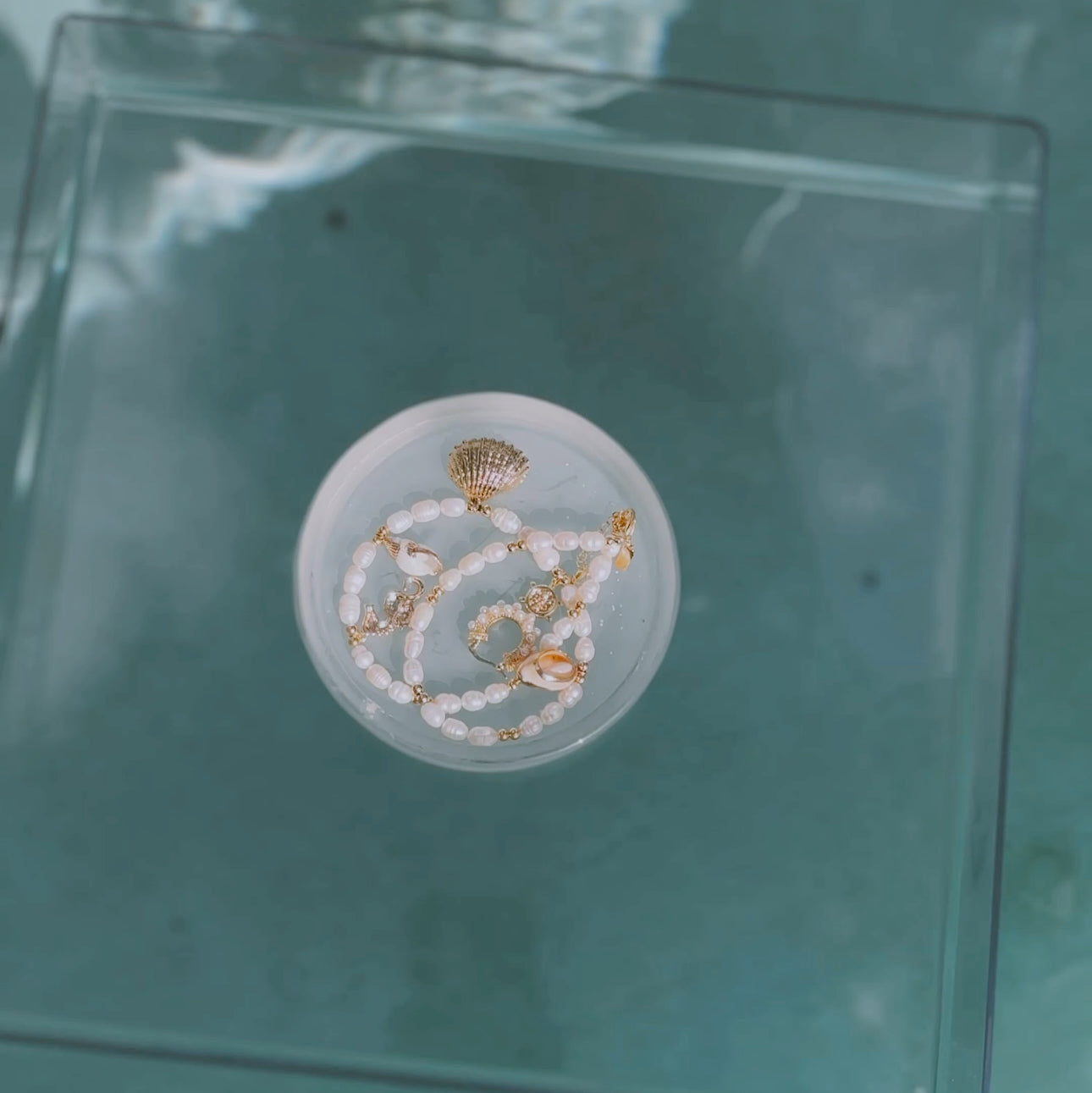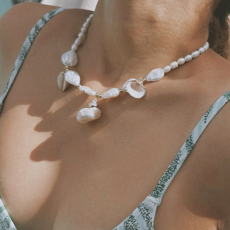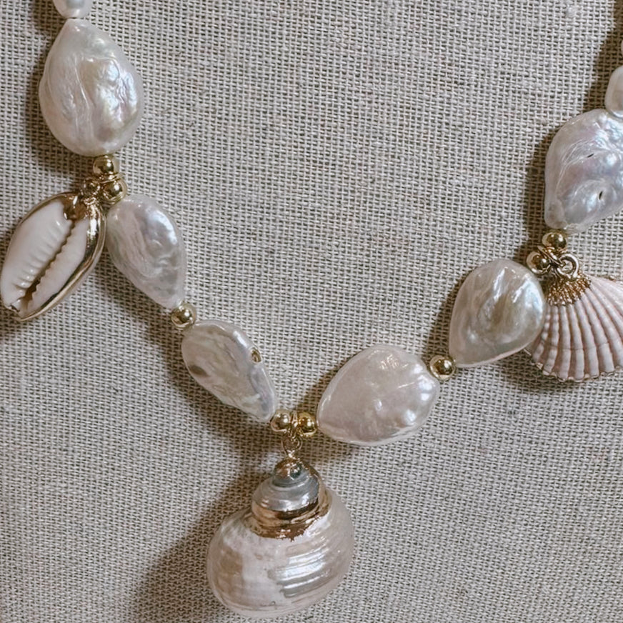 - Materials: Freshwater pearls, seashells, gold-plated.