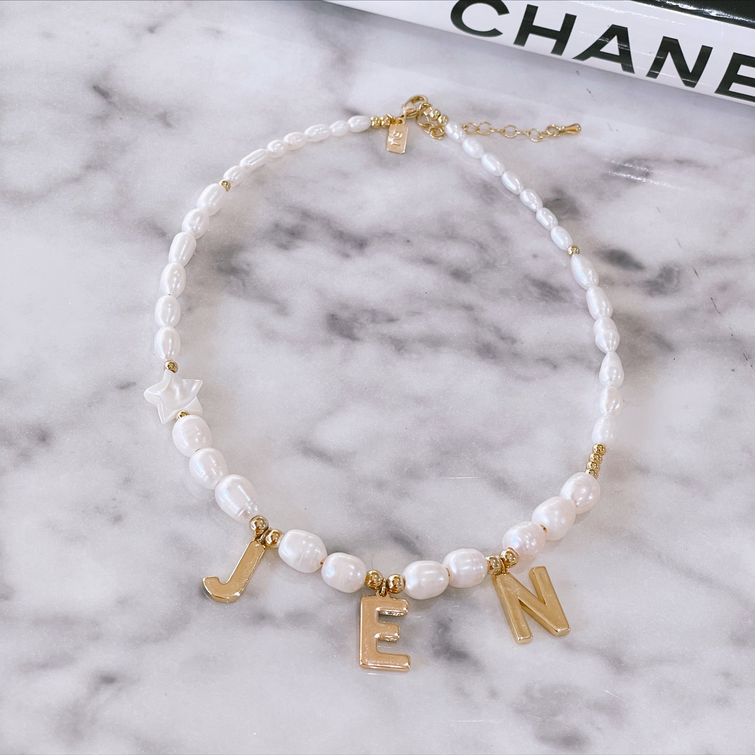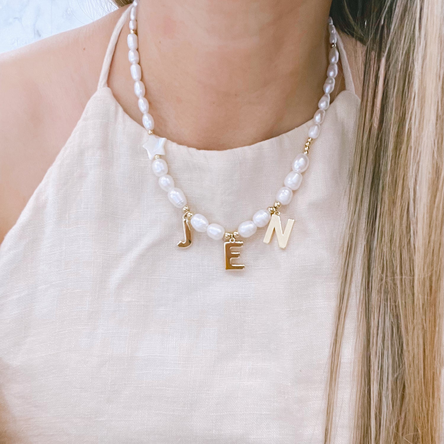 Custom your name or just your initial in this amazing necklace made out of fresh water pearls.