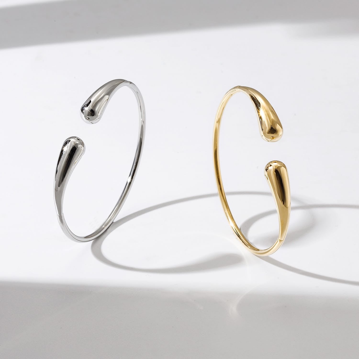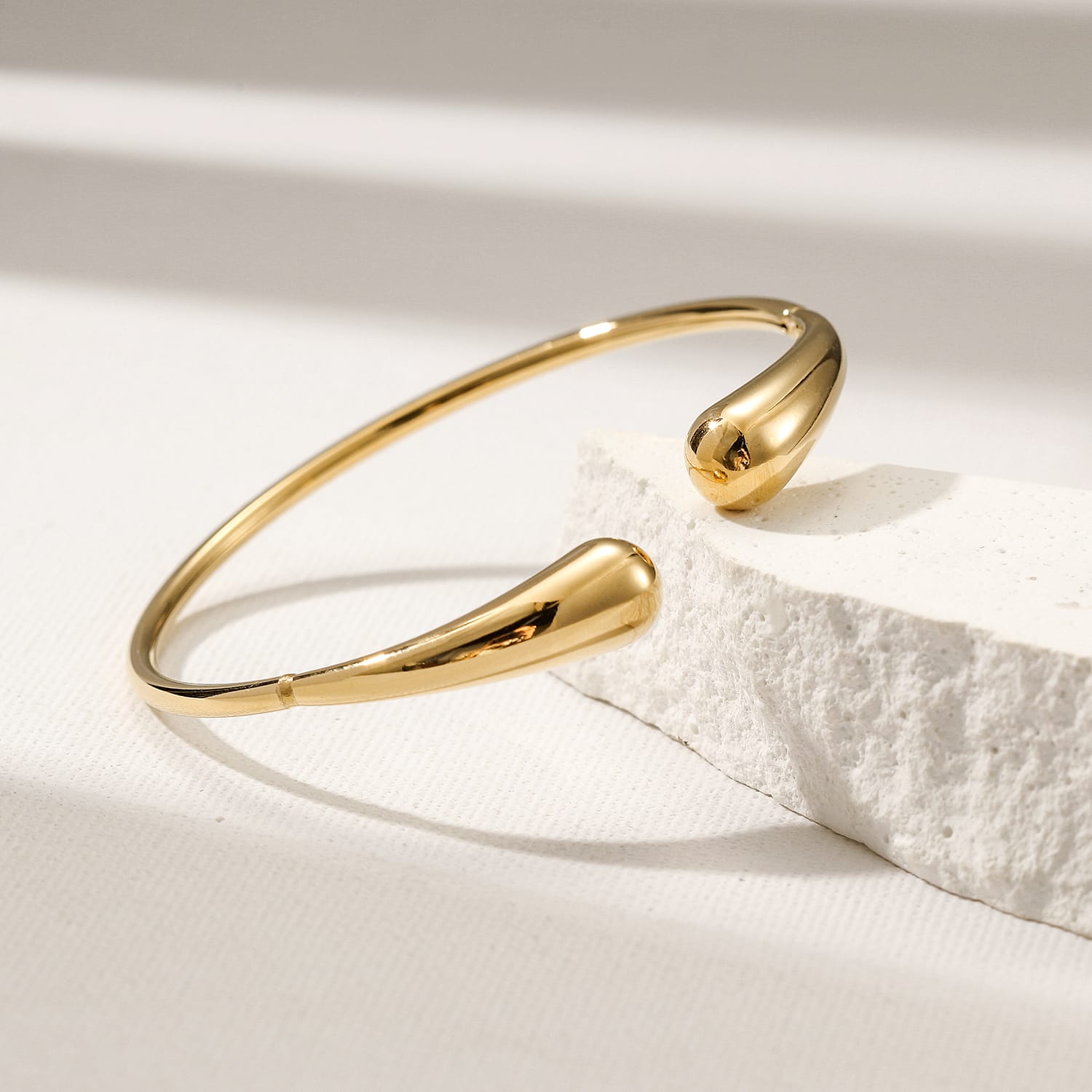 Teardrop Open Cuff Bracelet – Stainless Steel (Gold or Silver)