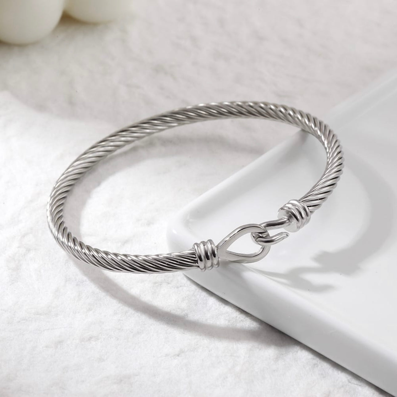 Twisted Cable Hook Bracelet – Stainless Steel
